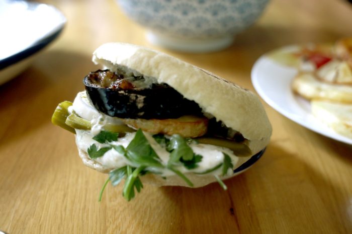 Heat pan and add sunflower oil. Lightly salt eggplant and fry on each side until golden.