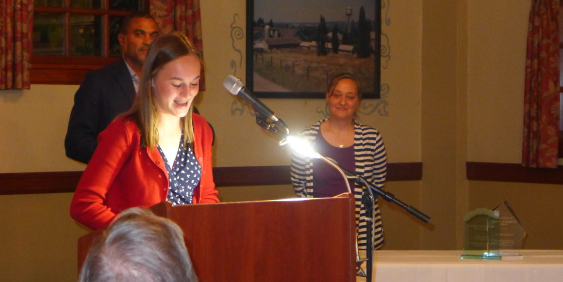 PHOTO: Bella Phillips accepts her Stars for Kids Award at the Janus Youth Programs annual dinner on Nov. 7, 2018. Photo by Peggy Valenti